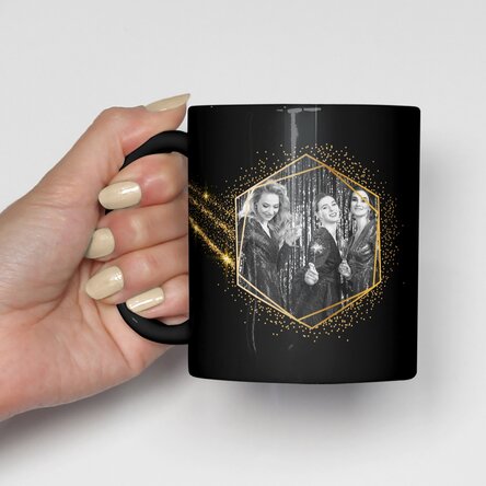 Cană neagră personalizată cu 2 poze