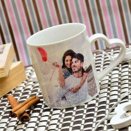 Cană personalizată cu 2 poze - model toartă în formă de inimă