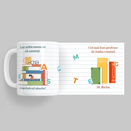 Surprinde-ți profesorul/profesoara de română cu un cadou pe măsură! Ce pot personaliza? Cana poate fi personalizată cu text.