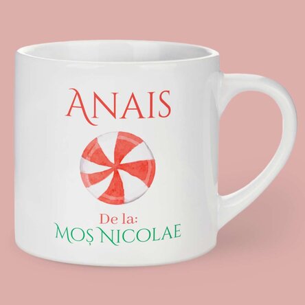 Cană personalizată pentru copii cu text - De la Moș Nicolae