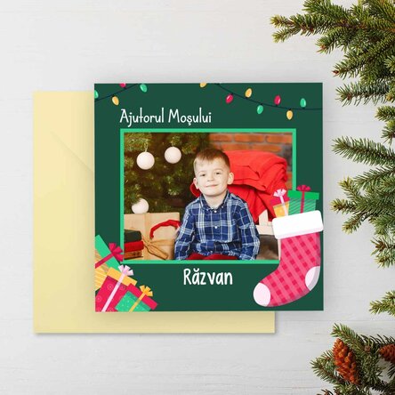 Card pătrat personalizat cu mesaj și o poză - Mesaj de la Moș Nicolae