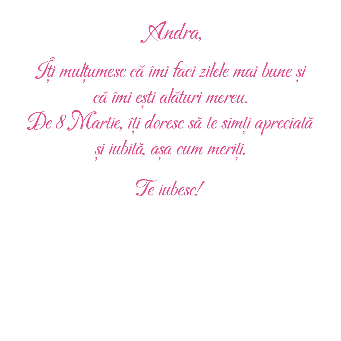 Dacă este o iubitoare de frumos, de flori de primăvară sau colorit, atunci acest card cu o poză trebuie să facă parte din colecția ei! Ce pot personaliza? Cardul poate fi personalizat cutext.