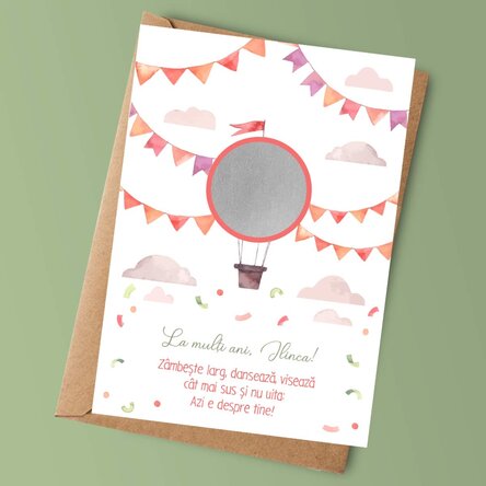 Card răzuibil personalizat cu text pentru copii - Zi de naștere