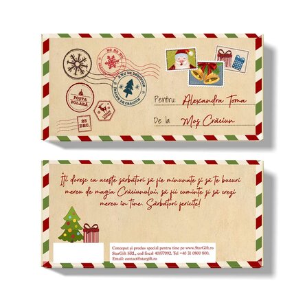 Ciocolată personalizată cu text - De la moș Crăciun