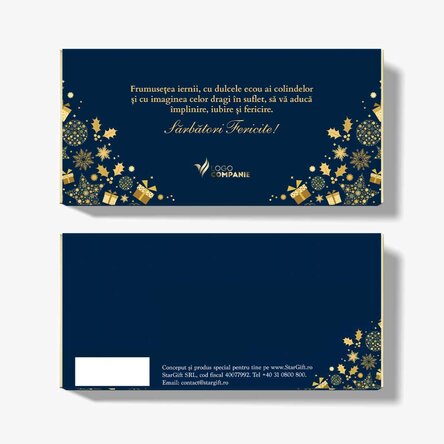 Anul acesta poți fi tu moșul preferat al celor cărora le faci cadouri. Cum poți face acest lucru? N-o să îți vină să crezi, dar tot ce trebuie să faci este să cumperi o ciocolată, iar de restul ne ocupăm noi. Cadoul dulce de anul acesta este o ciocolată personalizată care va candida fără emoții la cel mai emoționant dar de Crăciun. Dacă vrei să îți motivezi angajații și să simtă că au o contribuție importantă în compania ta, indiferent de poziția pe care o ocupă, ori dacă vrei să oferi o atenție deosebită colaboratorilor tăi, noi îți recomandăm acestă ciocolată personalizată cu motive de Crăciun și cu logo-ul companiei tale.