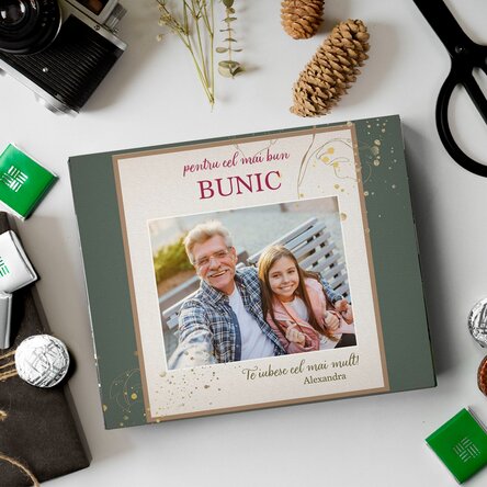 Cutie de bomboane personalizată cu poză și mesaj - pentru cel mai bun BUNIC