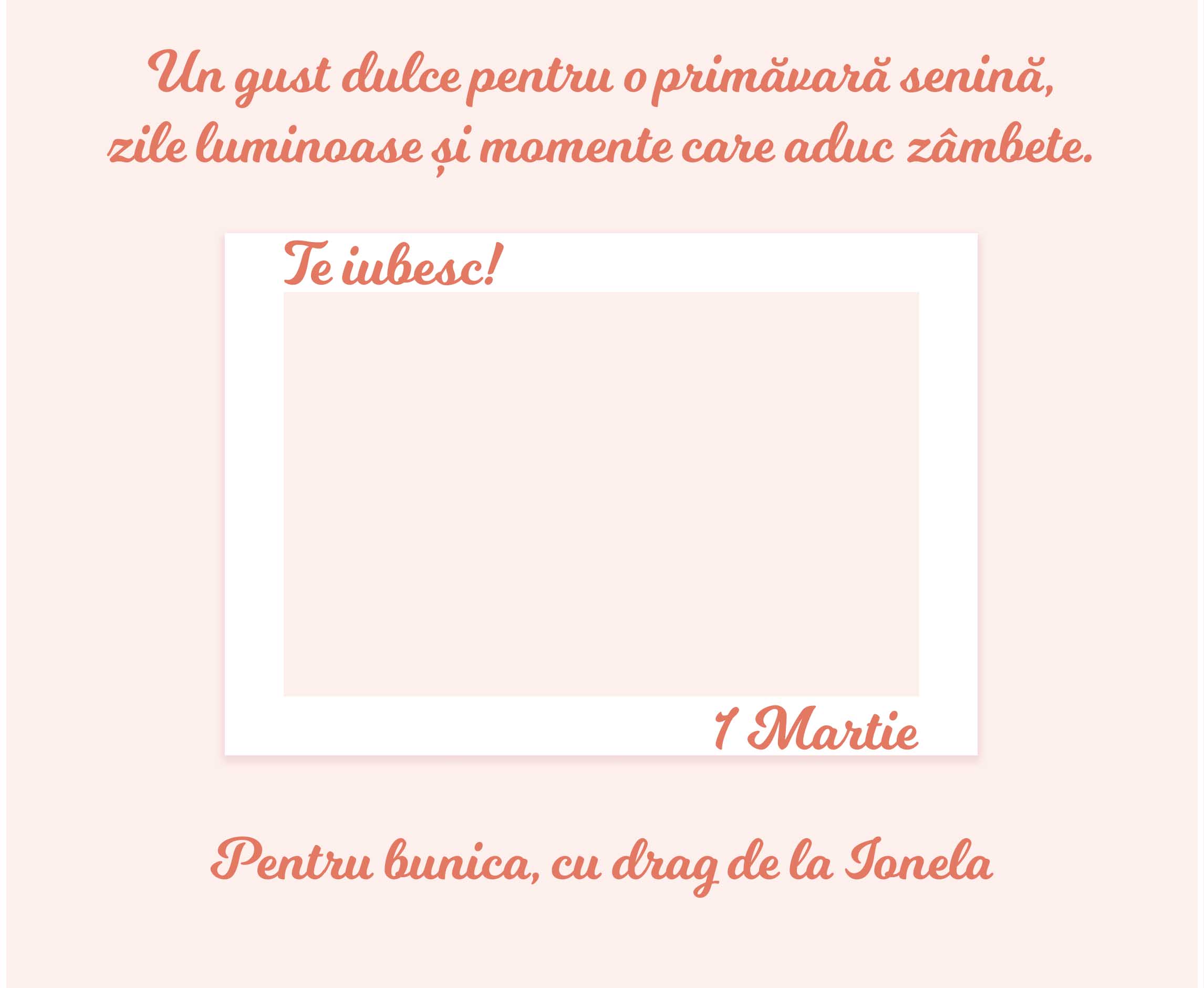 Vezi și alte Cadouri de 1 martie, Cadouri de 8 Martie, Cadouri de primăvară, Cadouri de Ziua Mamei si de 8 Martie, Cadouri personalizate de 8 martie pentru bunica, Cadouri personalizate de 8 martie pentru mama, Cele mai apreciate cadouri de primăvară, Ciocolată personalizată pentru Mărțișor, Cutii de ciocolată personalizate de 8 Martie, Cutii de ciocolată personalizate de Mărțișor, Dulciuri personalizate pentru Mărțișor, Toate cadourile de 8 Martie, Cadouri de 8 martie pentru iubită și soție, Cadouri personalizate pentru profesoare de 8 martie, Cutii de bomboane personalizate pentru profesori, Cadouri personalizate, Cutii de bomboane, Dulciuri și bomboane personalizate, Toate cutiile de bomboane personalizate, Toate dulciurile și bomboanele personalizate, Cadouri, Cadouri în trend, Cadouri noi și originale, Toate cadourile, Cadouri pentru iubitorii de ciocolată, Colecția nouă de 8 Martie, Cutii de bomboane personalizate, Dulciuri personalizate la reducere, Toate mărțișoarele personalizate.