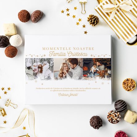 Cutia de trufe poate fi personalizată cu 3 fotografii și mesaj.