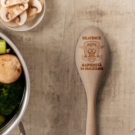 Lingură de lemn FC Rapid personalizată - Rapidistă în bucătărie