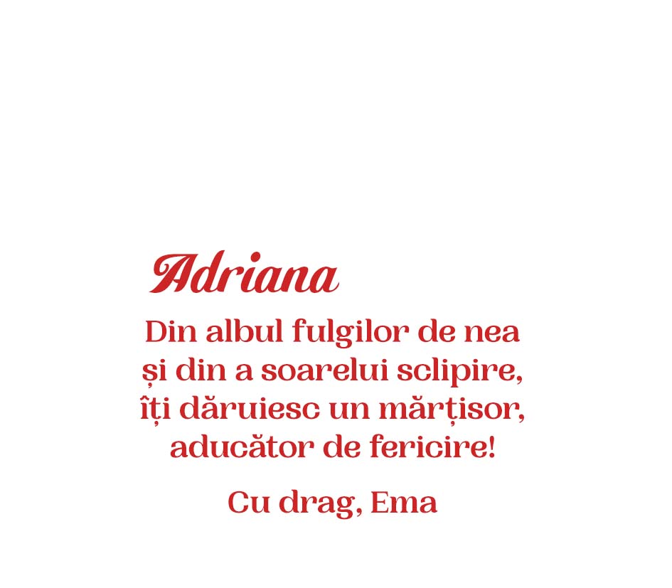 Vezi și alte Cadouri de 1 martie, Cadouri de primăvară, Colecția nouă de Mărțișor, Toate mărțișoarele personalizate, Mărțișoare pentru colege, Vinuri personalizate pentru ea, Mini sticluțe de vin personalizate, Toate vinurile personalizate, Vinuri.