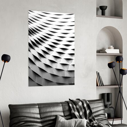 Succesiunea plăcilor ondulate creează o senzație de mișcare fluidă și ordine hipnotică, sugerând atât precizie inginerească, cât și ritm organic. Ideal pentru spații moderne, acest print aduce un aer sofisticat și contemplativ, potrivit pentru iubitorii de minimalism și design contemporan.