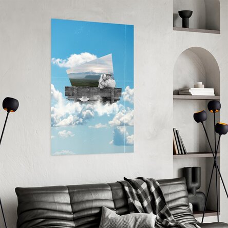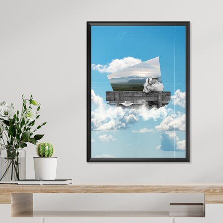 O compoziție poetică ce unește colajul digital cu romantismul atemporal. Un cuplu în alb-negru, așezat pe o bancă suspendată deasupra norilor, contemplă o fereastră către un peisaj de vis – simbol al amintirilor, iubirii care transcende timpul și spațiul. Această lucrare evocă sentimentul de evadare, liniște și promisiunea unui „pentru totdeauna”.