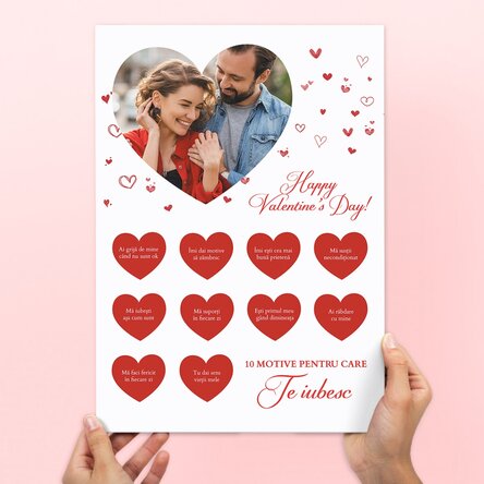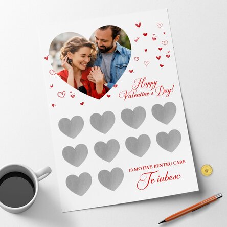 Poster răzuibil personalizat cu o poză și text - 10 motive pentru care te iubesc