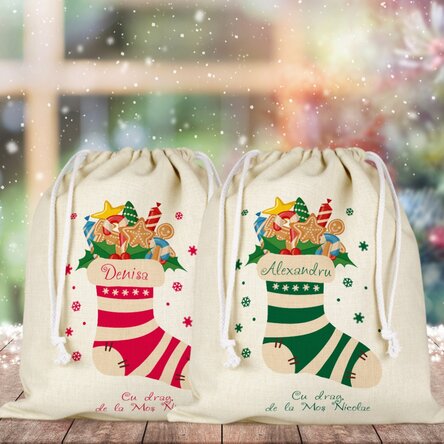 Săculeț mediu pentru cadouri personalizat cu text - Șoseta magică