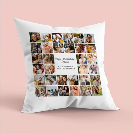 Cum pot face personalizarea? Pasul 1: Apasă pe butonul "Personalizează" Pasul 2: Fă click pe o fotografie exemplu și apoi apasă pe butonul verde din partea de jos "Încarcă poze" (Imaginile vor fi salvate pentru folosire ulterioară) Pasul 3: Selectează de pe calculator, telefon sau tabletă fotografiile. Uploadul va începe imediat. Pasul 4: Alege poza care vrei să apară. Pasul 5: Dacă este necesar, poți edita poza modificând poziționarea, zoom-ul sau rotația. Pasul 6: Când ești mulțumit de rezultat, apasă pe butonul "Confirmă" Pasul 7: Selectează textul și completează cu mesajul dorit. Pasul 8: Apasă butonul "Finalizare" și adaugă produsul în coș.