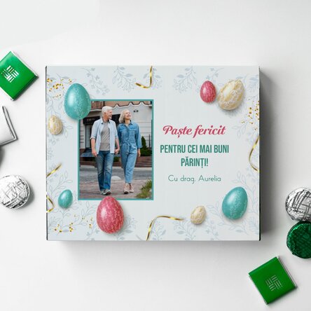 Cutie de bomboane personalizată cu text și o poză - Set Acasă de Paște