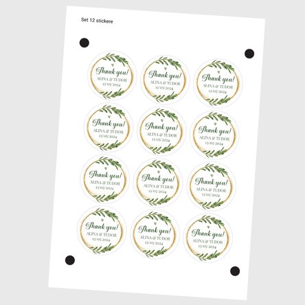 Set de 12 stickere (etichetă autoadezivă) mărturii rotunde personalizate cu mesaj
