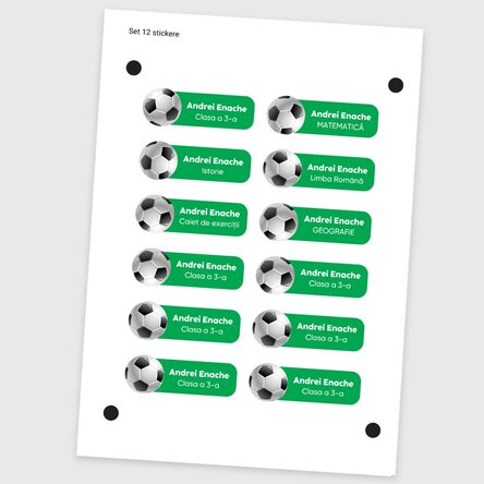 Set de 12 stickere (etichetă autoadezivă) personalizate pentru școală - Sport