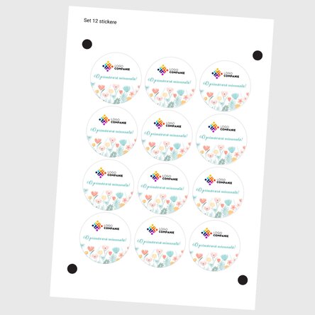Set de 12 stickere (etichetă autoadezivă) rotunde, diametru 5cm personalizate cu logo și mesaj - Pri