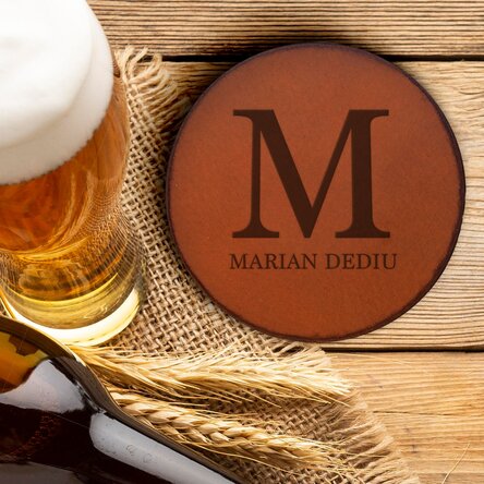 Suport pahar din piele personalizat cu o inițială și nume