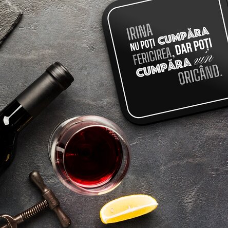 Suport pentru pahar personalizat cu nume - Fericire