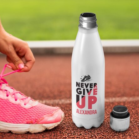 Termos cu bază albă personalizat cu nume - Never give up