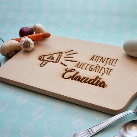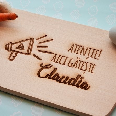 Notă: Personalizarea ține cont de litere mari sau mici. Vom grava mesajul exact cum este introdus și te rugăm să îl scrii cu atenție și să folosești funcția de previzualizare. Tocătorul nu se recomandă să fie introdus în mașina de spălat vase.