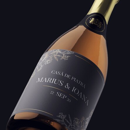 Ce pot personaliza? Eticheta de vin spumant poate fi personalizată cu text.